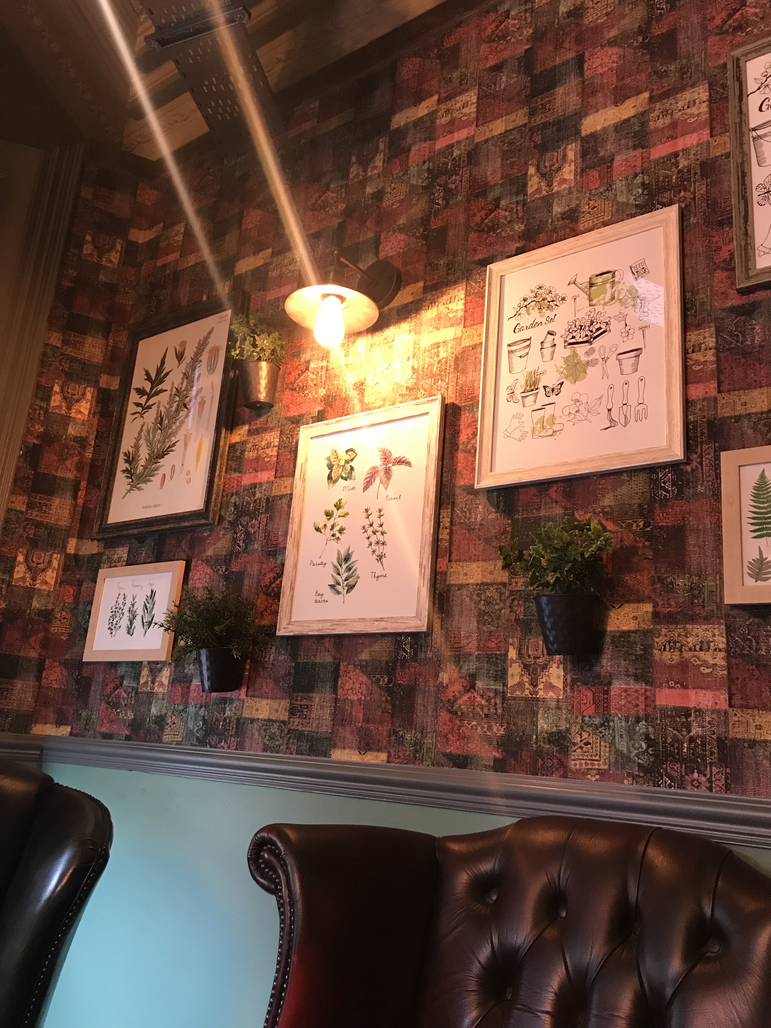 If the name doesn’t already give it away, you can tell from walking in the entrance that this restaurant is garden/botanical themed. All the décor is perfectly fitting, from the watering cans hanging above you to the flowerpot centrepieces, and all the other greenery in between. My only criticism would have to be the actual tables and chairs themselves. I felt they didn’t fit in with the ‘potting shed’ vibe and felt almost like they were going on their own theme. If it were me, I’d have some funky picnic benches and garden-type furniture to enhance their look.