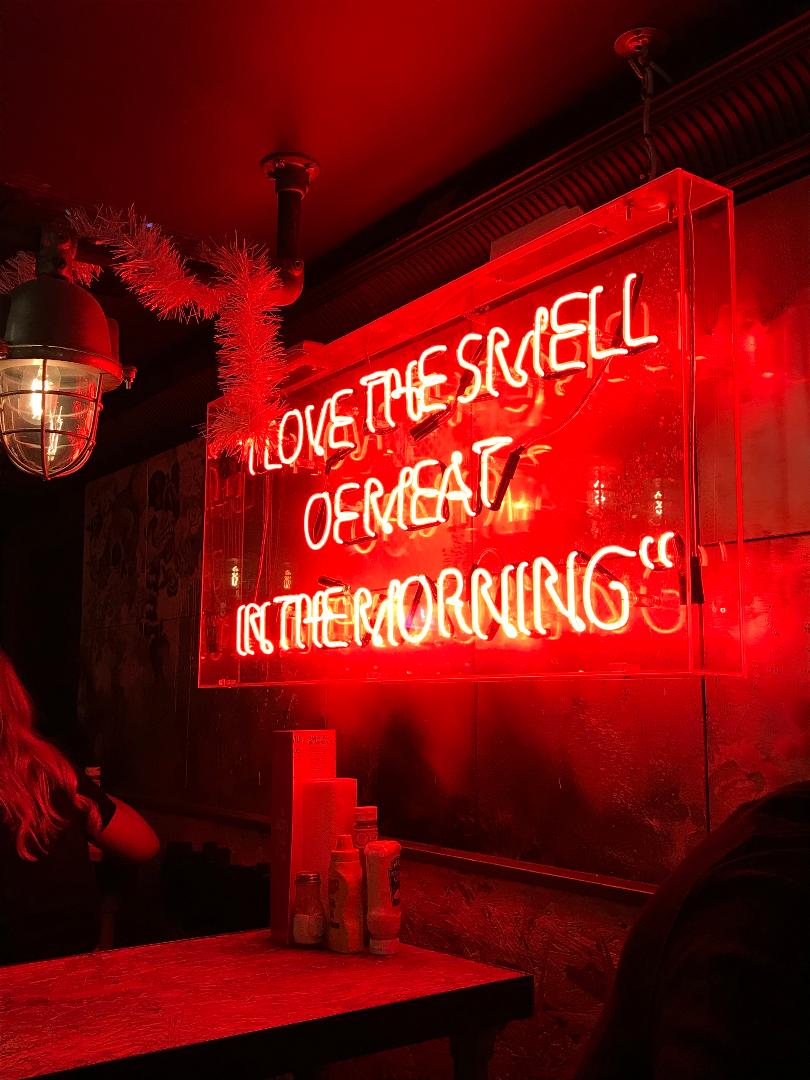 The Boozy Cow was recommended to me by a vegetarian…this place literally has a sign that says, “I love the smell of meat in the morning”, so I knew if a non-meat eater can’t deny its reputation, it must be worth a visit. If you’re into a proper dirty (in a good greasy burger kind of way), underground, eat with your hands, pint to wash it down kind place, you’re in for a treat. They don’t give out any cutlery here and I have to admit it was kinda messy, but I was too embarrassed to ask for any, so I just went for it and so should you.